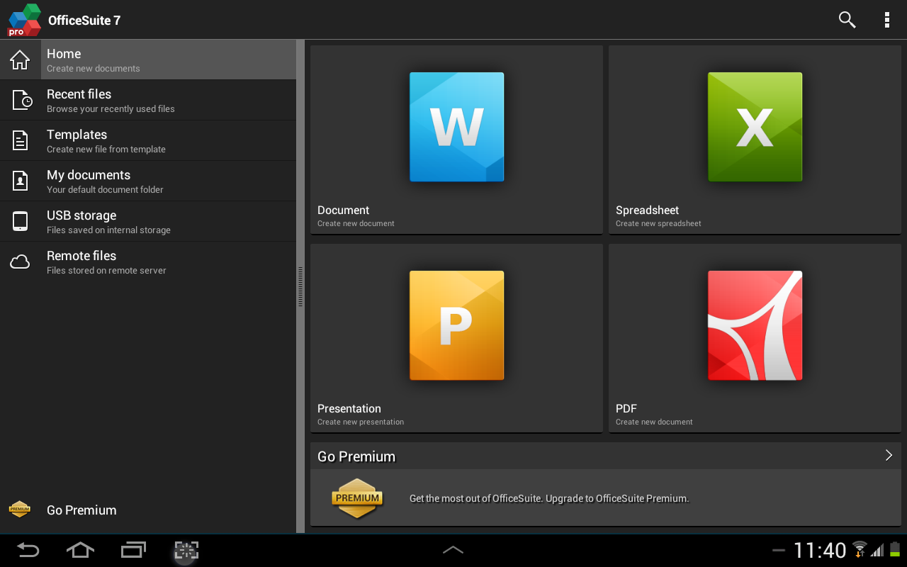 OfficeSuite Pro allows you to view, create, edit, print and share Microsoft Word, Excel and PowerPoint files on the go. You can also open attachments and see PDF files on an Android based phone or tablet with our feature-rich mobile office solution.
